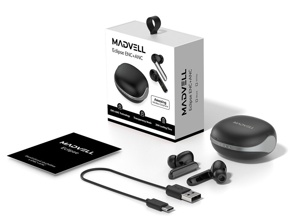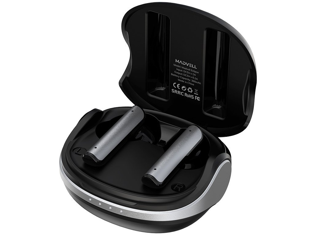 Kompaktné a štýlové slúchadlá Madvell Eclipse potešia milovníkov skvelej hudby. Každé zo slúchadiel má dva mikrofóny, takže umožňujú pohodlné a ničím nerušené telefonovanie vrátane režimu s ANC a ENC. Všetky ovládacie prvky nájdete na dotykovej ploche slúchadiel. Pomocou nich jednoducho preskočíte skladbu alebo prijmete hovor. Štandardná výdrž slúchadiel je 7.5 hodiny, pričom túto dobu je možné predĺžiť pomocou nabíjacieho puzdra až na 37.5 hodiny.