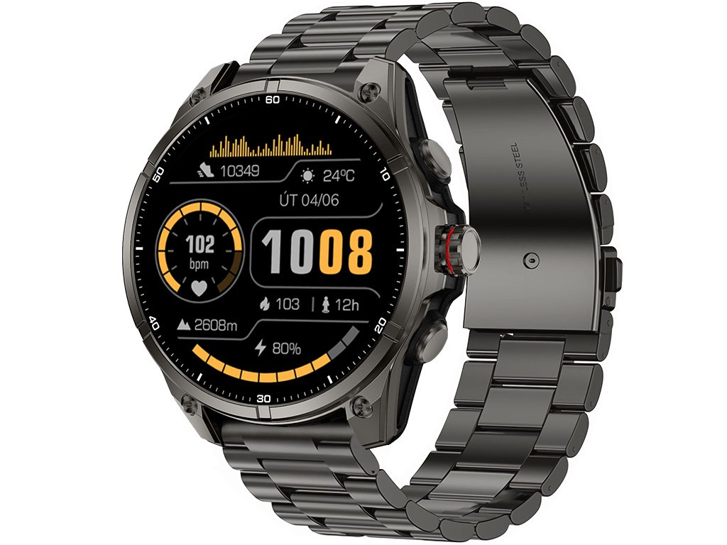 Madvell Onyx 3 sú odolné inteligentné hodinky najnovšej generácie s multi-band GPS a výdržou 10 dní na jedno nabitie. Disponujú veľkým 1,43" AMOLED displejom s vysokým rozlíšením 466 × 466 px a vynikajúcou čitateľnosťou na priamom slnku. Telo z nehrdzavejúcej ocele podčiarkuje prémiový dizajn a zaisťuje odolnosť aj v náročných podmienkach. Vstavaný AI asistent prináša analýzy vašej kondície a odporúčania pre šport. Výkonná LED svietidlo so štyrmi úrovňami jasu a dosvitom 10 metrov. Hodinky sú vodotesné podľa štandardu 5ATM vrátane IP68, takže sú vhodné aj pre plávanie v mori. Samozrejmosťou je prepojenie s aplikáciami ako Strava, Apple Zdravie alebo Google Fit. Za kvalitou si stojíme, preto naše hodinky majú 3-ročnú záruku!