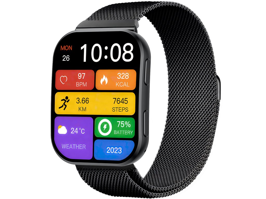 - Notifikácie: prichádzajúce hovory, SMS, aplikácie (Facebook, Messenger, Instagram, TikTok, e-maily a mnohé ďalšie), ženský cyklus, pitný režim.