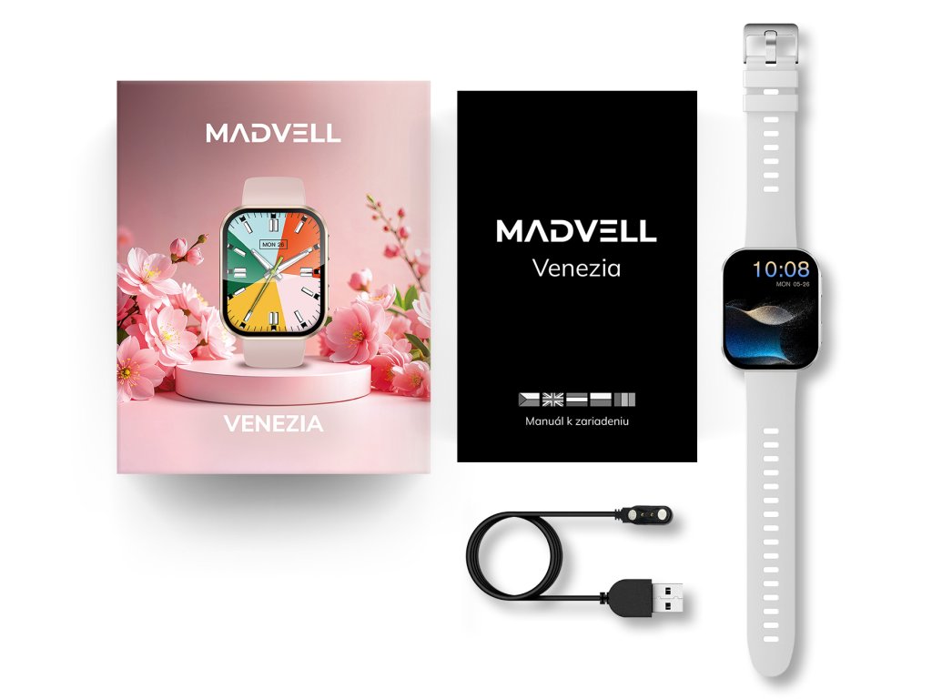 Madvell Venezia❤️ – dámske inteligentné hodinky inšpirované talianskou eleganciou a módou, spájajú špičkovú technológiu s vycibreným dizajnom. Krásny AMOLED displej s uhlopriečkou 1,96" je jemne zaoblený a podčiarkuje výnimočný charakter hodiniek. Na výber je viac než 500 unikátnych ciferníkov ✨, vďaka ktorým si hodinky jednoducho zladíte so svojím štýlom aj náladou. Sledujú krvný tlak, srdcový tep, hladinu kyslíka v krvi (SpO₂), stres aj kvalitu spánku. Hodinky pripojíte ku každému smartfónu s Android aj iOS a zobrazujú notifikácie zo všetkých aplikácií. Za kvalitou si stojíme – preto majú hodinky 3-ročnú záruku ✅