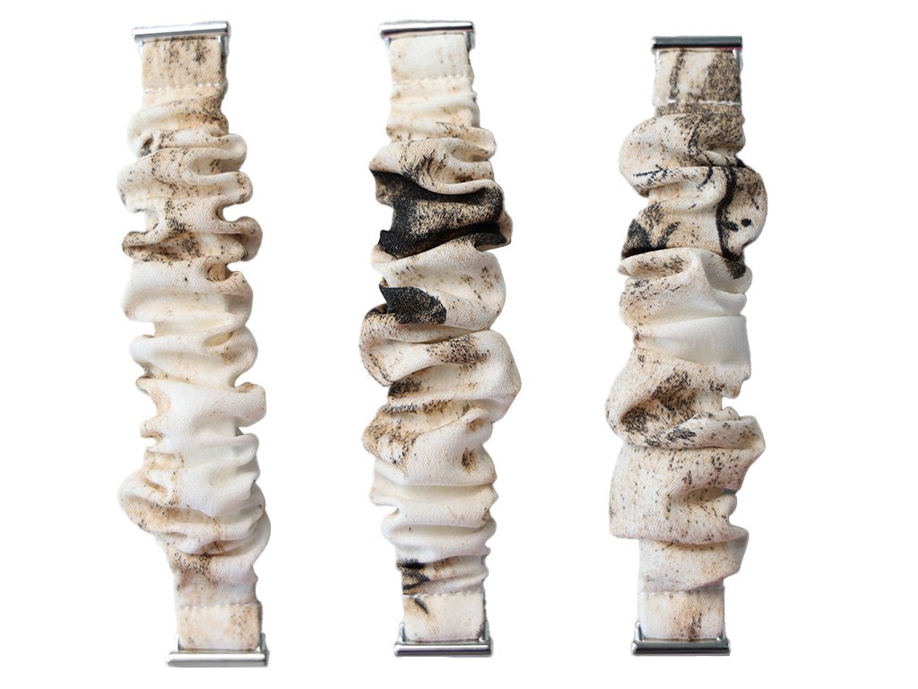 Látkový remienok je ľahký, flexibilný a veľmi pohodlný na nosenie. Vďaka svojim vlastnostiam je ideálnou voľbou na každodenné nosenie a športové aktivity. Látka je podšitá pružnou gumou, teda sa čiastočne prispôsobí veľkosti zápästia. Iba jedna veľkosť pre celé zápästie, pre veľmi tenké alebo veľmi veľké zápästie bude popruh voľný alebo tesný.