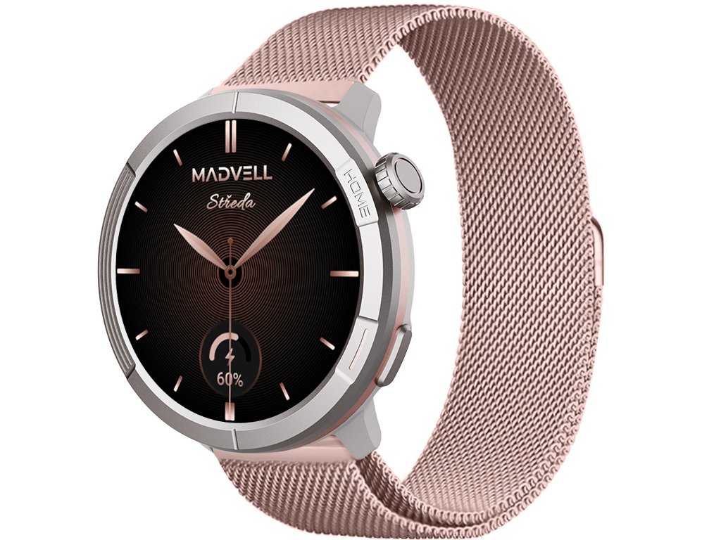 Smart hodinky Madvell Active s GPS a bluetooth volaním ružové s kovovým remienkom