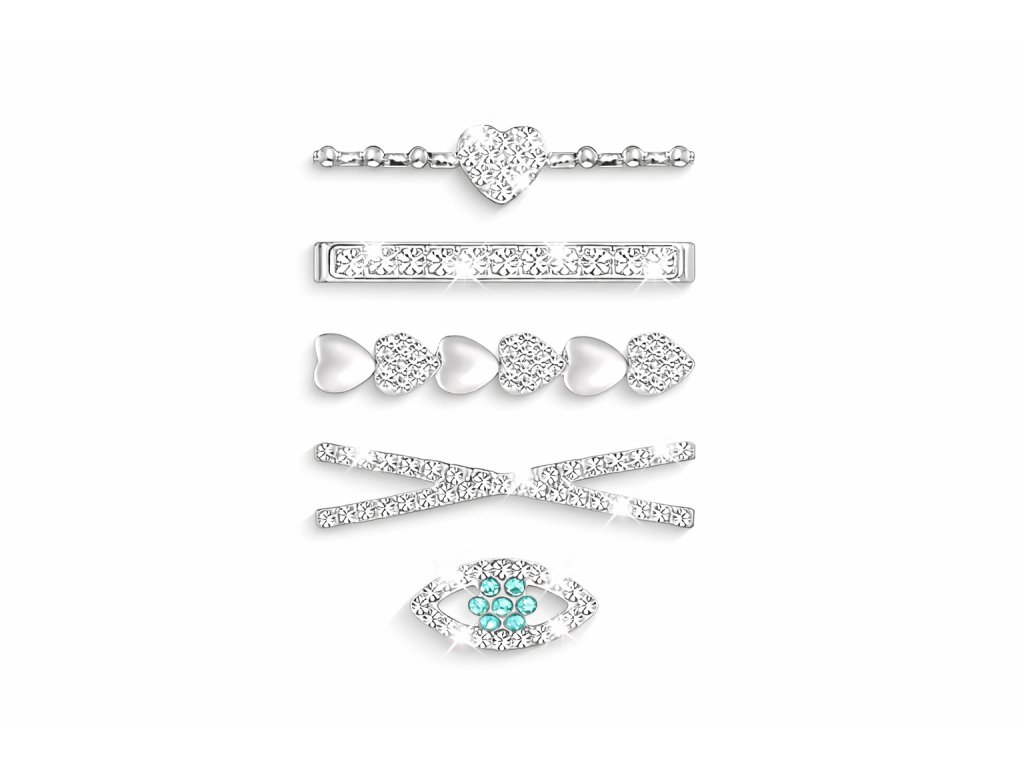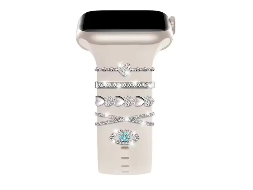 Dodajte svojim inteligentným hodinkám nádych elegancie a osobitého štýlu s týmto exkluzívnym setom šperkov v striebornom prevedení. Kombinácia jemných srdiečok, trblietavých zirkónov a detailne spracovaných ozdôb vytvára dokonalú rovnováhu medzi jemnosťou a luxusom. Ideálny doplnok pre ženy, ktoré chcú, aby ich hodinky žiarili rovnako ako ony.